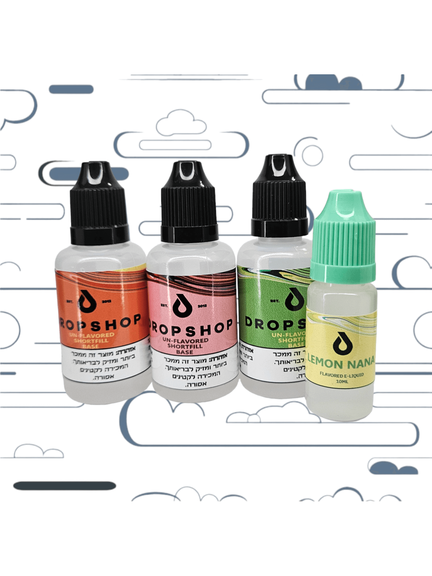 הערכה כוללת 10 מ"ל תמצית טעם ו20 מ"ל בסיס